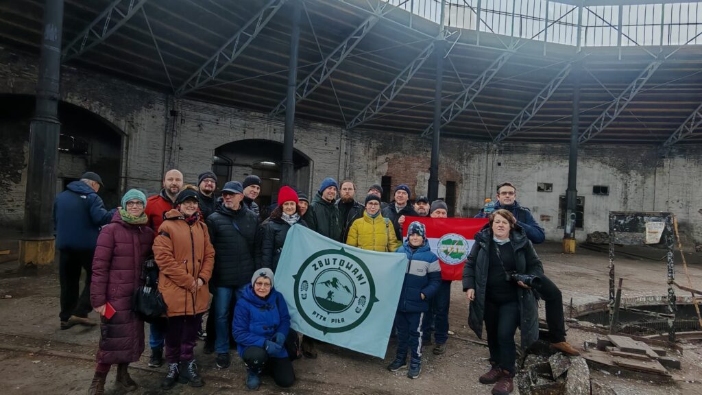 Spacer rozpoczął się na holu dworcowym i tu zapoznaliśmy się z historią kolei w Pile i samego budynku. Następnie zapoznaliśmy się z historią figury świętej Katarzyny stojącej przy wejściu do tunelu. Potem przeszliśmy już w strugach deszczu do słynnej parowozowni – Okrąglaka.