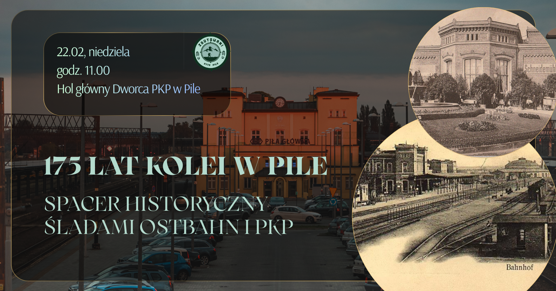 Z tej podwójnej, jubileuszowej okazji zapraszamy na spacer historyczny, organizowany we współpracy z Muzeum Kolei w Pile. Podczas spotkania poznamy niezwykłość Piły pod względem kolejowym – dowiemy się, jak ważną rolę odgrywała na kolejowej mapie regionu oraz jak kolej wpłynęła na rozwój miasta na przestrzeni lat.